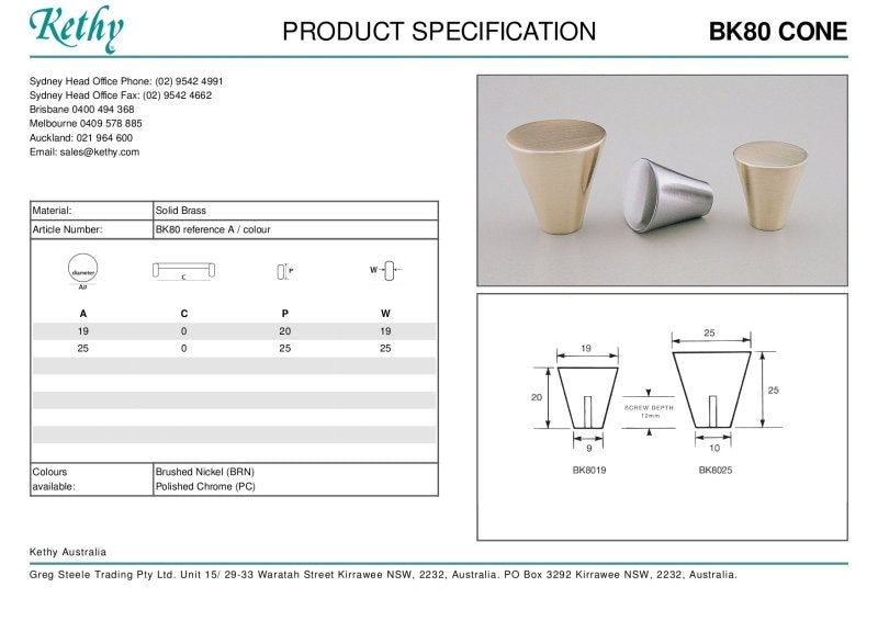 The KETHY BK80 Cabinet Cone Knob (25mm) is a stylish and functional hardware accessory designed to enhance the aesthetic appeal of cabinets, drawers, and furniture. With its sleek and modern design, this cone-shaped knob adds a touch of sophistication to any space while providing a convenient grip for easy opening and closing.