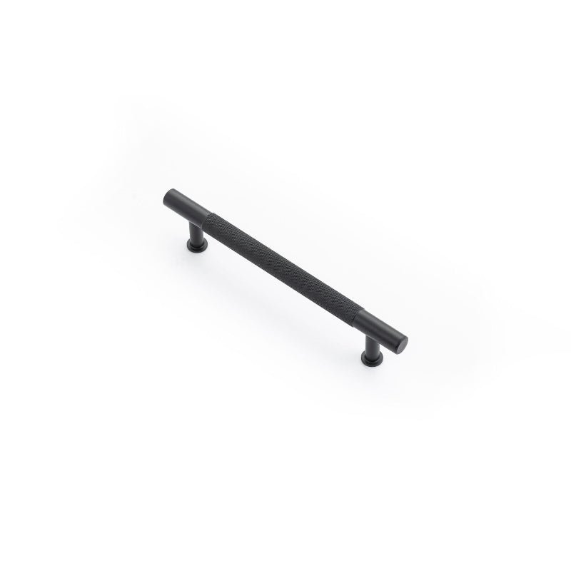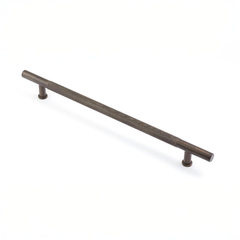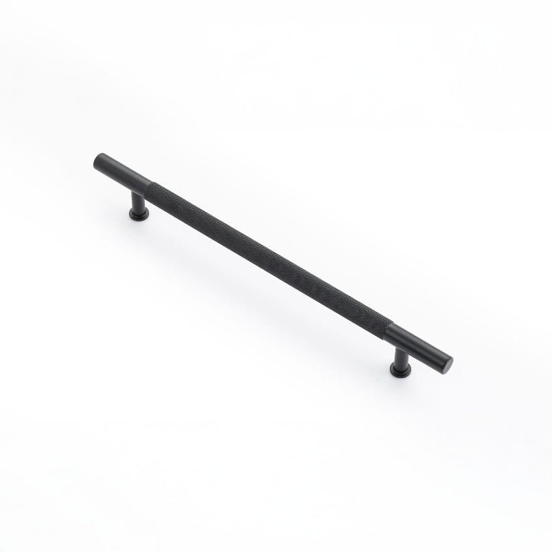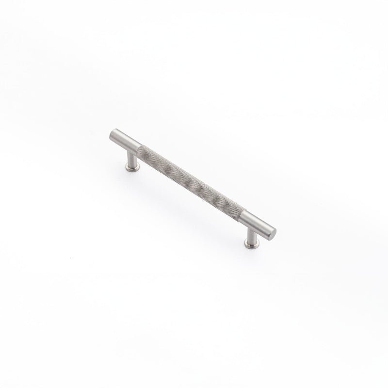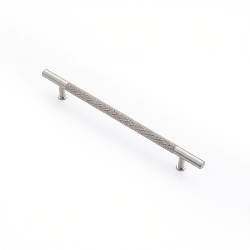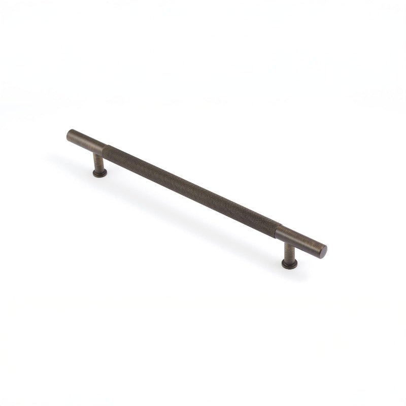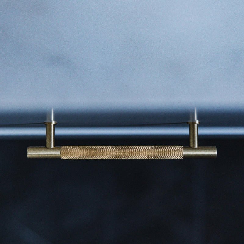 The Castella Chelsea Handle is crafted from solid brass with a refined knurled detail that is both tactile and easy to grip. Designed for a modern industrial aesthetic, it is ideal for kitchen cabinets, pantries, dressers, and drawers.