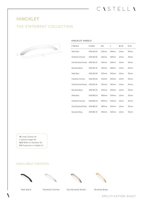 The Castella Hinckley Cabinet Handle combines sleek curves with a minimalist design, making it a perfect choice for modern interiors. Its streamlined profile and subtle elegance suit kitchens, pantries, dressers, and other storage spaces.