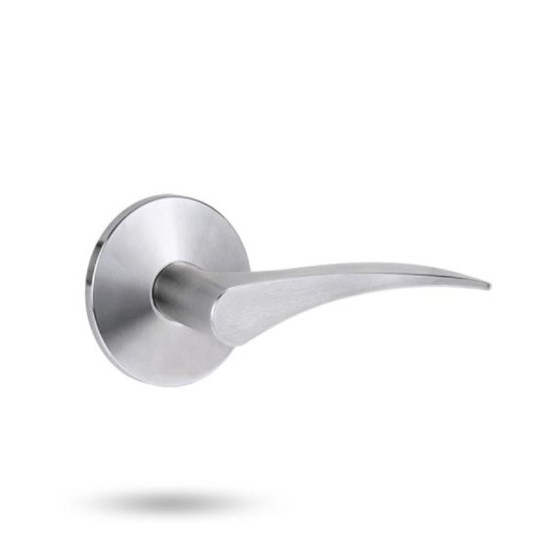 The Lockwood 1360 Series 153 Left Hand Lever on Round Rose Full Set is made from solid brass with a durable polyester powdercoat finish for excellent corrosion resistance and long-lasting performance. It measures 120mm in length with a 70.6mm projection and 43mm finger clearance, providing ergonomic comfort tailored for left-hand use. Suitable for doors 32mm to 50mm thick, it features fully concealed fixings on the 65.5mm round rose for a clean and modern aesthetic. This lever is compatible with Lockwood 5260 tubular latches, Selector 3770, and Synergy 3570 mortice locks. The handed design must be specified when ordering due to the shape of the lever. Proudly assembled in Australia, it meets stringent quality and durability standards, making it ideal for commercial, residential, and institutional applications.