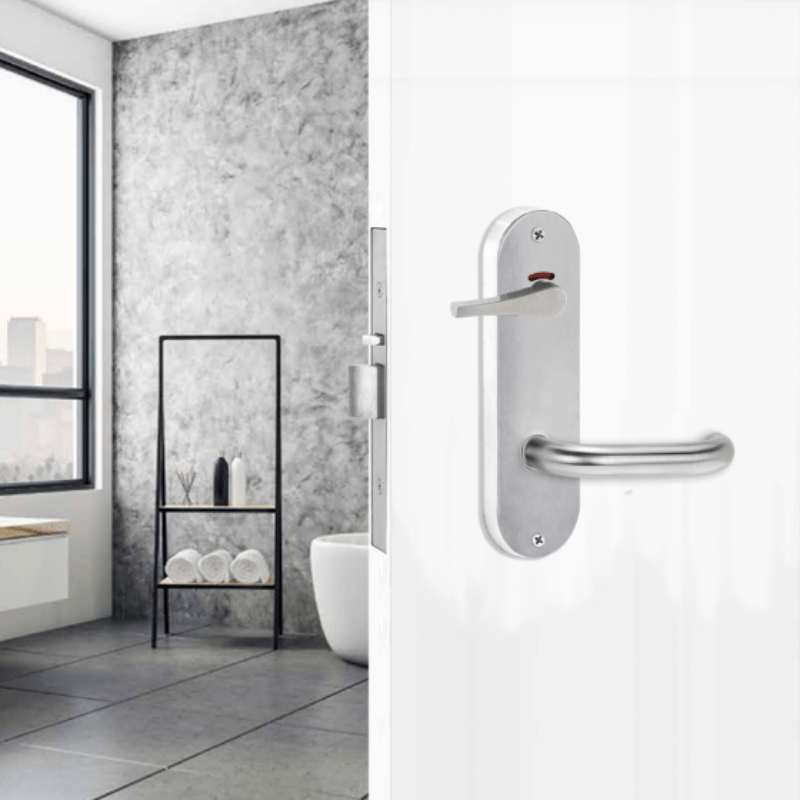 The Lockwood 2941 Round End Plate with Privacy Indicator, Disabled Turn, and 70 Lever in Polyester Powdercoat finish is a robust and accessible door hardware product ideal for commercial, institutional, and public environments. The plate measures 166mm by 48mm by 12mm and fits timber doors with thickness from 32mm to 45mm. It features a visible privacy indicator, a clutching disabled turn mechanism allowing cylinder operation even if the thumbturn is held from inside, and an ergonomic 70 lever designed for frequent use and comfort. The polyester powdercoat finish offers excellent resistance to corrosion, scratches, and wear, making it suitable for demanding architectural applications. The plate supports back-to-back installation with concealed fixing externally and visible fixing internally. Fire rated for up to 4 hours and backed by a 25-year mechanical warranty and a 10-year finish warranty, it ensures durability and reliability for architects, builders, and facility managers.