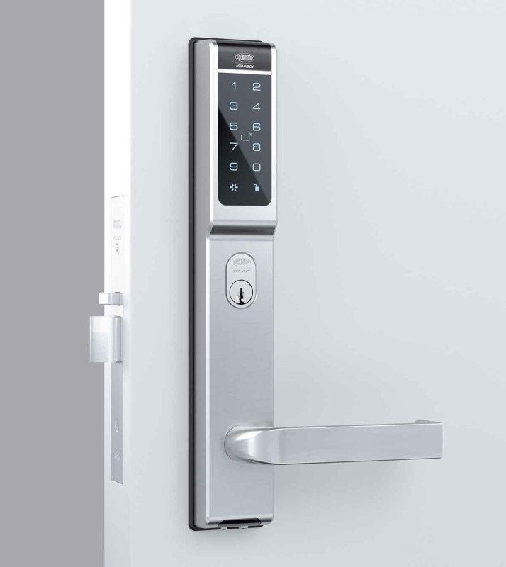 Digital Door Lock designed for medium to heavy-duty applications. Its full-size lever handles and its large 10-digit keypad enables control access in a wide variety of applications.