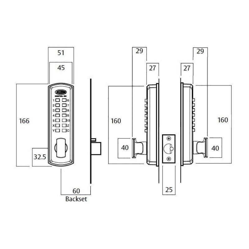 Lockwood Digital Lockset Double Keypad Satin Chrome