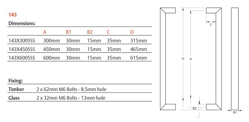 Constructed of 304 grade stainless steel, Lockwood Entrance Handles are suitable for use in external environments.