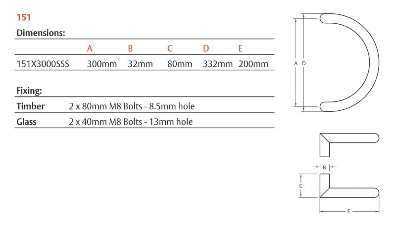 Constructed of 304 grade stainless steel, Lockwood Entrance Handles are suitable for use in external environments.