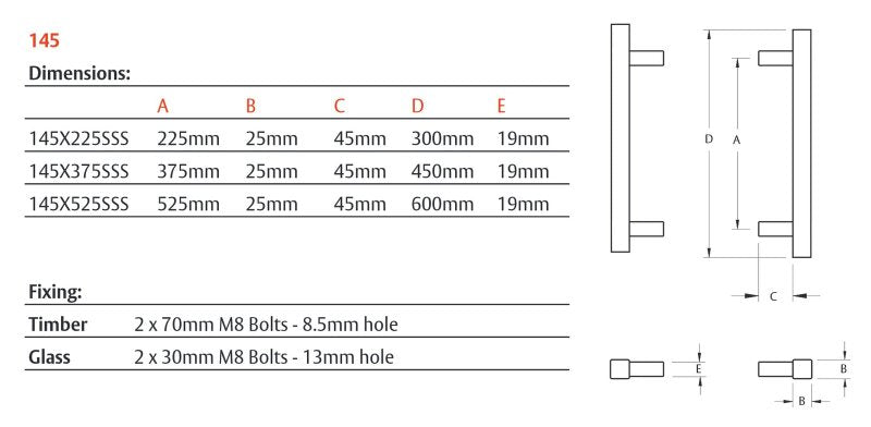 LOCKWOOD ENTRANCE PULL HANDLE 145X525SSS 525MM SATIN STAINLESS STEEL PAIR