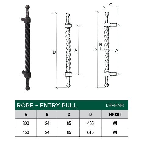 • ROPE HANDLE NO ROSE 300 WROUGHT IRON