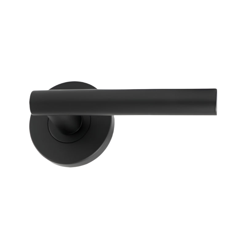 The Gainsborough Amelia Dummy Lever Set (120AMELMB) is a non-operational, fixed lever designed for left-handed doors that don't require a latch or lock. This is ideal for wardrobes, closets, or other cupboard doors. It features a contemporary geometric design with concealed fixings on a 63mm round rose and is finished in a modern matte black.