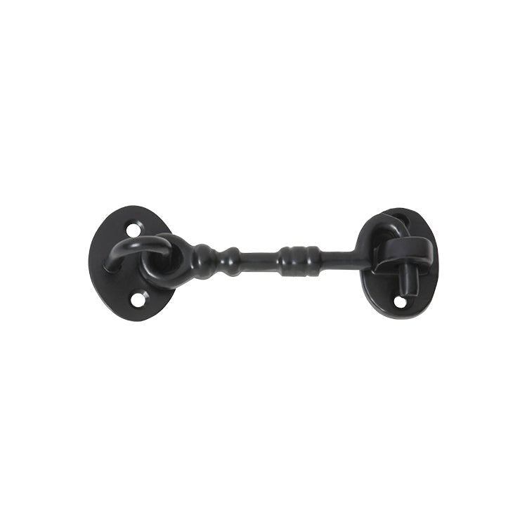 The TRADCO Small Cabin Hooks in Iron Matt Black offer a perfect blend of functionality and aesthetic appeal for securing doors and windows in a stylish manner. With a length of 100mm, these cabin hooks are designed to provide a compact yet robust solution for holding doors or windows open, adding both practicality and charm to your living space.