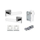 👉 Lever handles, square rose backplates, spindle, fixings, and tie bolts.