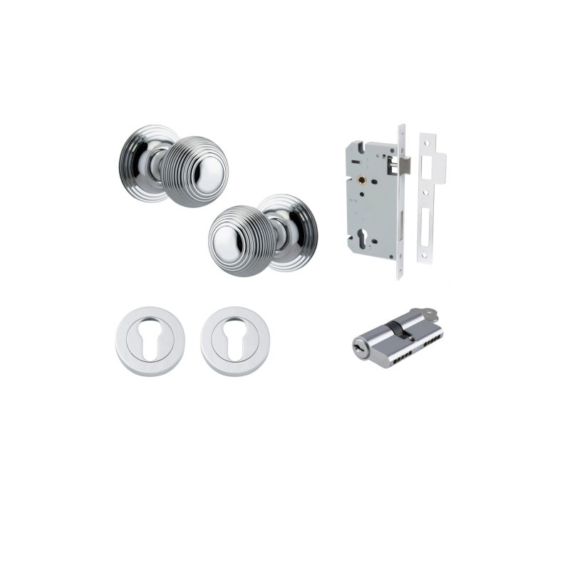 Package includes: Pair of knobs, round rose backplates with concealed-fix hardware, spindle, fixing screws, tie bolts