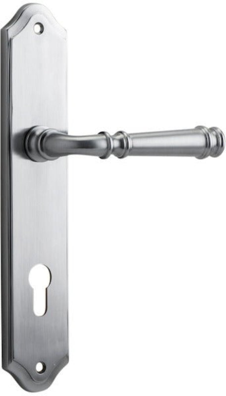 The Iver Verona Door Lever Handle On Shouldered Backplate brings a touch of refined elegance to any space. With its tapered lever design and classic shoulder-style backplate, it offers both visual sophistication and practical performance for interior and exterior doors.