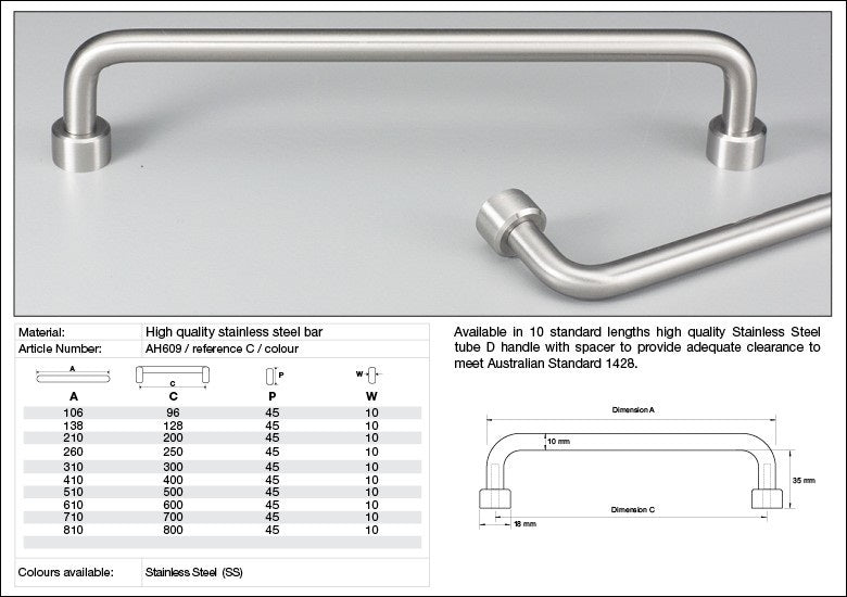The KETHY AH609 Cabinet Lommel 10mm Round D Pull Stainless Steel Handle offers a sleek and modern design for your cabinets or drawers. Crafted from high-quality stainless steel, this handle boasts durability and longevity, making it a reliable choice for both residential and commercial applications.