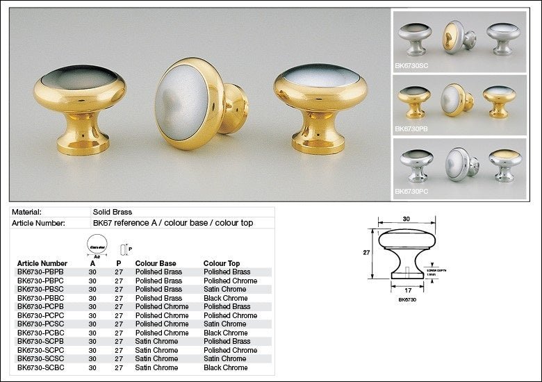 The KETHY BK67 Two Tone Cabinet Knob (30mm) is a stylish and versatile hardware accessory designed to enhance the aesthetics of your cabinets or furniture. With a diameter of 30mm, this cabinet knob offers a balanced size that is suitable for various applications, providing a functional and decorative solution.