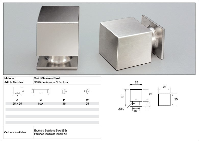- Finishes: Brushed Stainless Steel, Polished Stainless Steel