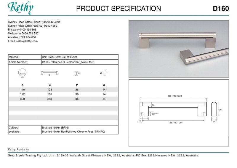 Key features of the KETHY D160 Cabinet Steel Bar Handle include:
