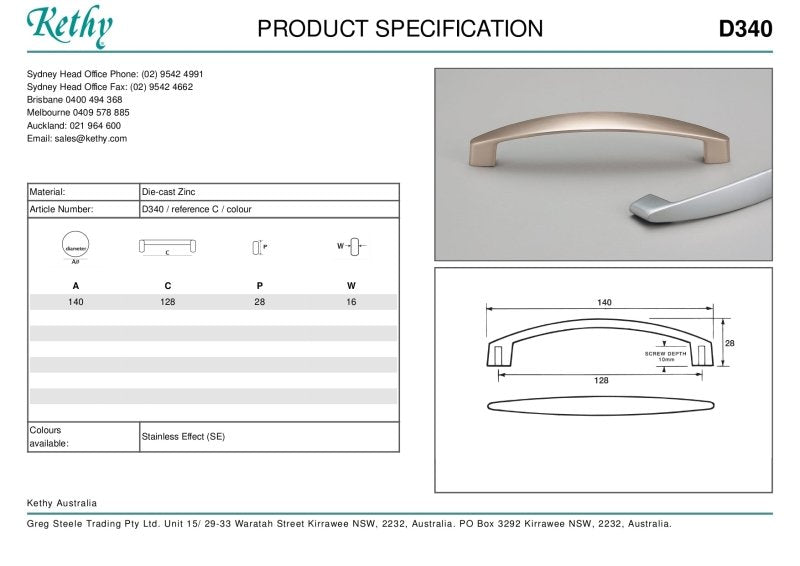 The KETHY D340 Cabinet Malibu Handle is a stylish and functional hardware accessory designed to enhance the aesthetics of cabinets, drawers, and furniture. With a length of 128mm, this handle provides a comfortable and ergonomic grip, making it easy to open and close doors or drawers.