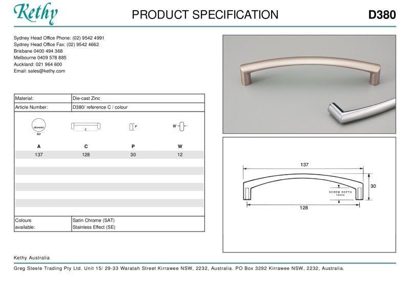 The KETHY D380 Cabinet Arched D Handle in 128mm is a sophisticated and stylish hardware accessory designed to enhance the aesthetic appeal of cabinets, drawers, and furniture pieces. Crafted with precision and attention to detail, this handle exemplifies both functionality and elegance.