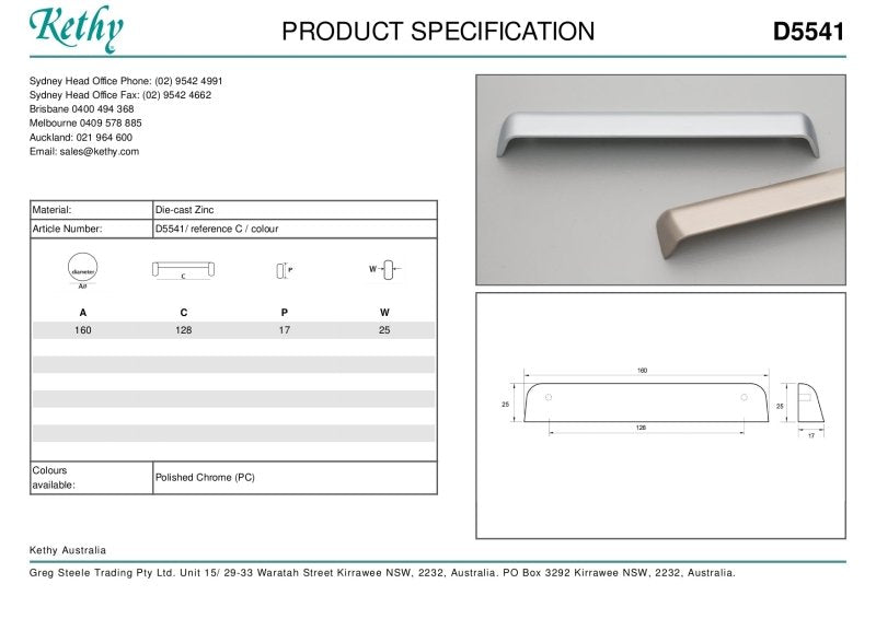 The KETHY D5541 Cabinet Die Cast Cup Handle is a stylish and functional hardware accessory designed to enhance the aesthetic appeal of cabinets and drawers. With a length of 128mm, this cabinet handle provides a comfortable grip for easy opening and closing of furniture doors. The handle is crafted from high-quality die-cast material, ensuring durability and longevity.