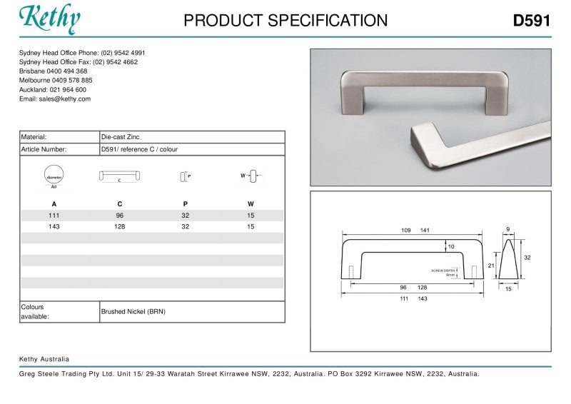 Key features of the KETHY D591 Cabinet Case Pull Handle include: