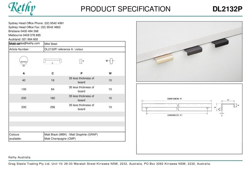 The KETHY DL2132 Cabinet Modena Horizontal Edge Pull is a stylish and functional hardware accessory designed to enhance the aesthetic appeal of cabinets and drawers. With a sleek and modern design, this edge pull is crafted to add a touch of sophistication to any contemporary space.