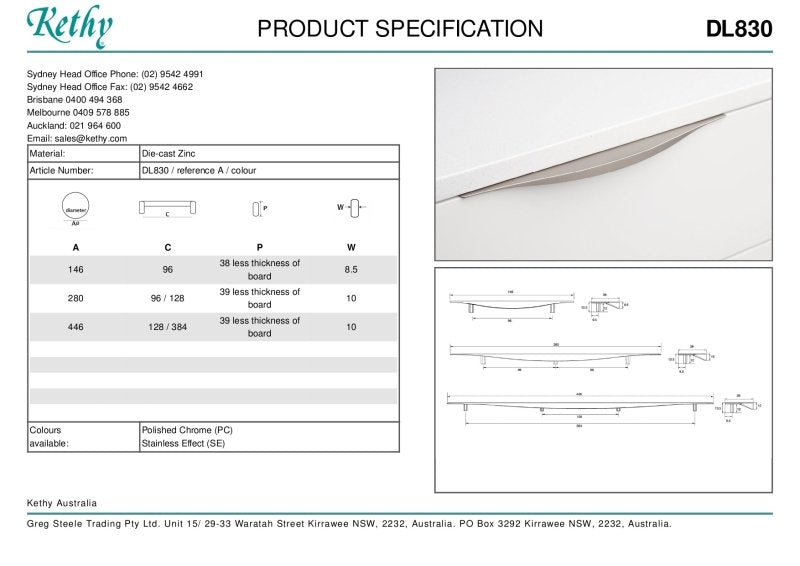 The KETHY DL830 Cabinet Flat Curved Edge Pull is a stylish and functional hardware accessory designed to enhance the aesthetic appeal and functionality of cabinets and drawers. This pull features a sleek and modern design, combining a flat surface with subtle curved edges to create a contemporary look.