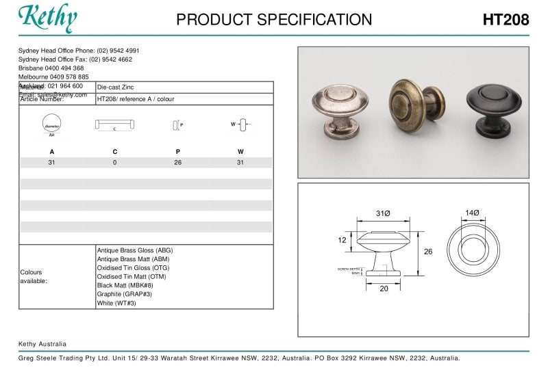 The KETHY HT208 Cabinet Lister Round Knob is a stylish and functional hardware accessory designed to enhance the aesthetics of cabinets, drawers, and furniture pieces. With a diameter of 31mm, this round knob strikes a balance between subtlety and presence, making it suitable for various interior styles.