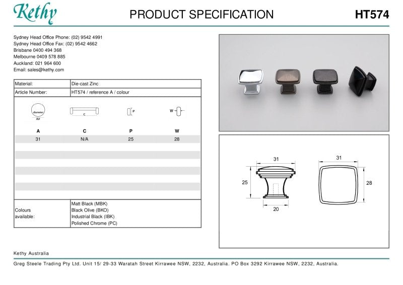 The KETHY HT574 Cabinet Darwen Knob is a stylish and functional hardware accessory designed to enhance the aesthetic appeal of cabinets, drawers, dressers, and other furniture pieces. With a diameter of 31mm, this knob offers a perfect balance between subtlety and visibility, making it suitable for various types of furniture styles and sizes.