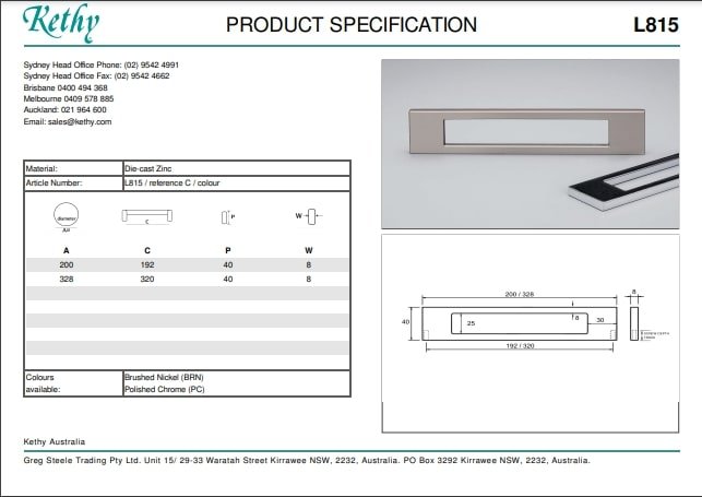 Introducing the KETHY L815 Cabinet Keyline Handle, measuring 192mm in length. Crafted with precision and style, this handle is designed to elevate the aesthetics of your cabinets, drawers, or furniture pieces. Its sleek and modern design adds a touch of sophistication to any space, making it perfect for kitchens, bathrooms, or any room in need of a stylish upgrade.