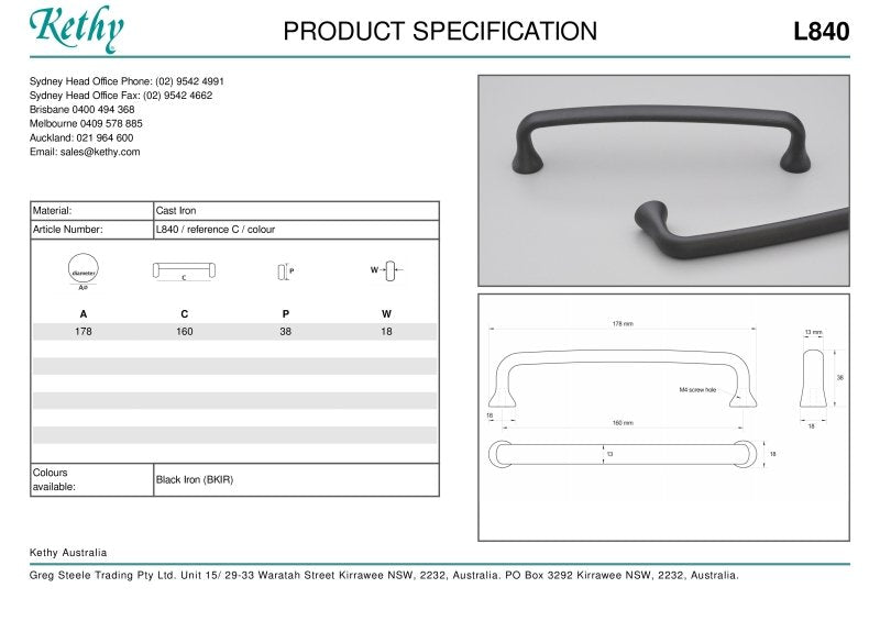 Measuring 160mm in length, the KETHY L840 Iron Handle strikes a balance between form and function. Its ergonomic shape ensures comfortable gripping while adding a touch of sophistication to any space. Constructed from durable iron, this handle is built to withstand daily use and maintain its elegance for years to come.