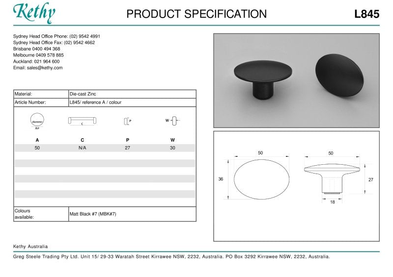 Introducing the KETHY L845 Dome Cabinet Knob, sized at a sleek 50mm, designed to elevate your cabinetry with style and functionality. Crafted with precision and attention to detail, this knob embodies modern sophistication, perfect for both contemporary and traditional settings.