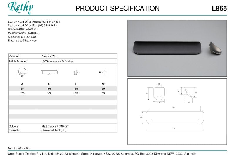 Introducing the KETHY L865 Cabinet Ski Pull Handle 160mm, a sleek and versatile addition to your cabinetry solutions. Crafted with precision and designed for both functionality and style, this handle brings a touch of elegance to any space.