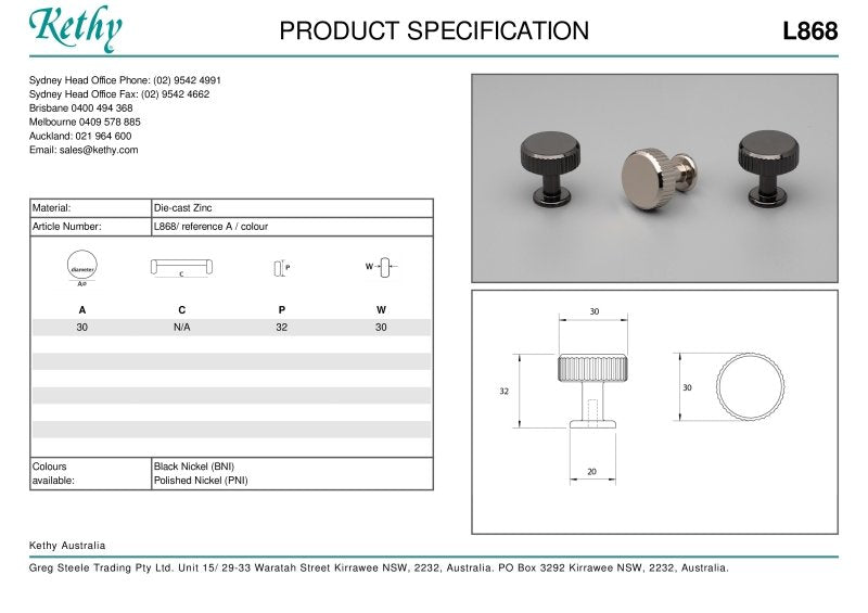 Introducing the KETHY L868 Skagen Cabinet Knob, 30mm:
