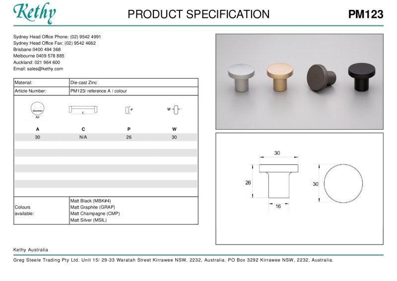 The KETHY PM123 Cabinet Bell Knobs 30mm are stylish and functional hardware accessories designed to enhance the aesthetic appeal and functionality of cabinets, drawers, and furniture pieces. Crafted with precision and attention to detail, these knobs feature a sleek bell-shaped design with a 30mm diameter, making them suitable for various furniture styles and sizes.