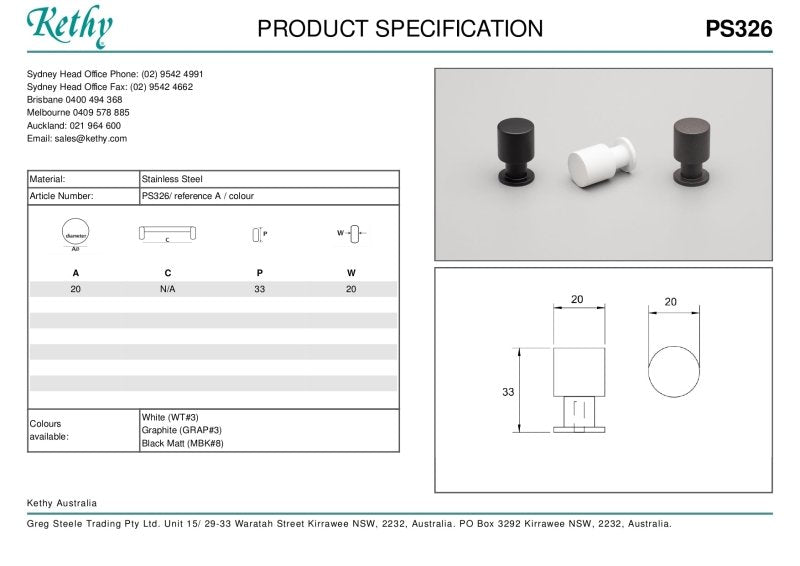 The KETHY PS326 Cabinet Eibar Knob Handle is a sleek and modern hardware accessory designed to enhance the aesthetics and functionality of cabinets, drawers, wardrobes, and other furniture pieces. With a diameter of 20mm, this knob handle offers a perfect balance between compactness and usability, fitting seamlessly into various styles of decor.