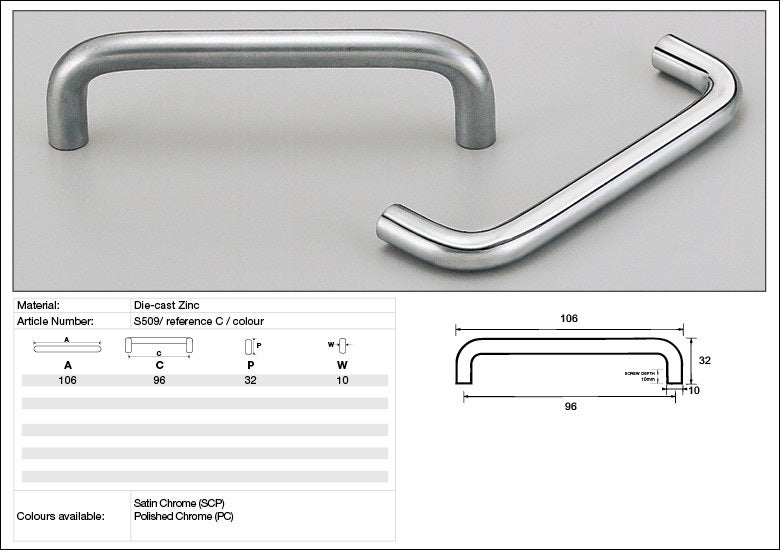 Constructed from high-quality materials, the S509 handle ensures durability and longevity, providing reliable functionality for everyday use. Its ergonomic design offers comfortable grip and effortless operation, facilitating smooth opening and closing of cabinet doors and drawers.