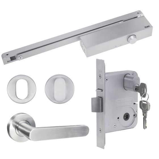 The Yale Simplicity Series is total door solution specifically targeted at the multi-residential development new construction market. Supplied in a consolidated door kit the Yale Simplicity Series incorporates a range of stainless steel rose door furniture, a mortice lock and door closer specifically intended for use on apartment doors.