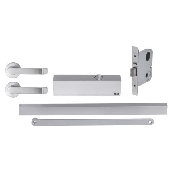The Yale Simplicity Series is total door solution specifically targeted at the multi-residential development new construction market. Supplied in a consolidated door kit the Yale Simplicity Series incorporates a range of stainless steel rose door furniture, a mortice lock and door closer specifically intended for use on apartment doors.