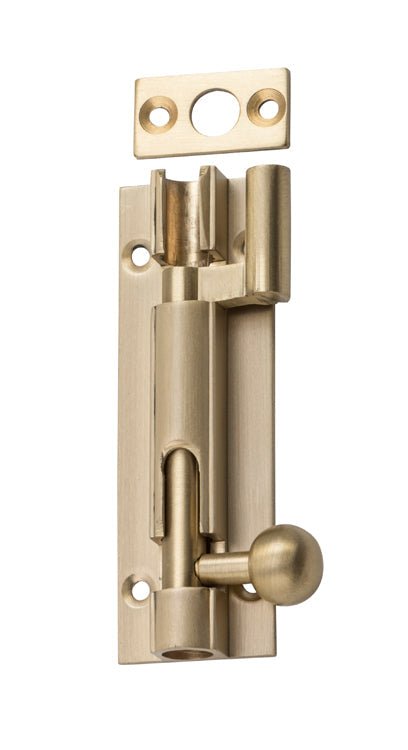 Explore Tradco's versatile Barrel Bolt collection, available in a spectrum of finishes and sizes to suit your needs. Crafted meticulously, these bolts come in various options like Antique Brass, Antique Copper, Chrome Plated, Matt Black, Polished Brass, Satin Brass, and Satin Chrome. Choose from sizes including 75mm, 100mm, and 150mm in height, each measuring 25mm wide and 7.5mm deep. Elevate security and style effortlessly with these durable and aesthetically pleasing barrel bolts from Tradco.