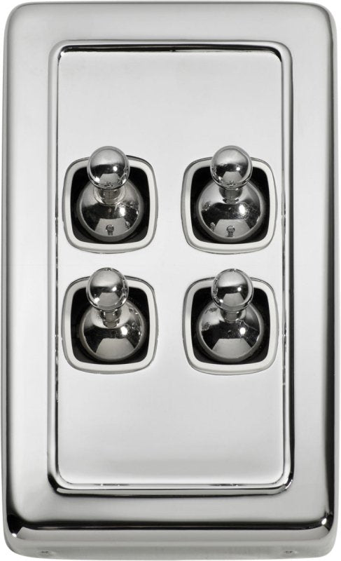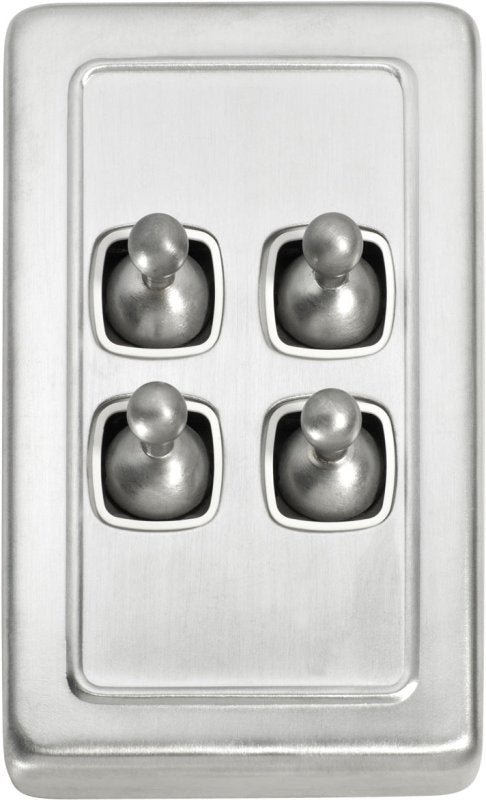Perfect for homes, offices, and heritage projects, the Tradco Switch Toggle 4 Gang 72x115mm is designed to provide reliable multi-switch functionality with a stylish and timeless aesthetic.