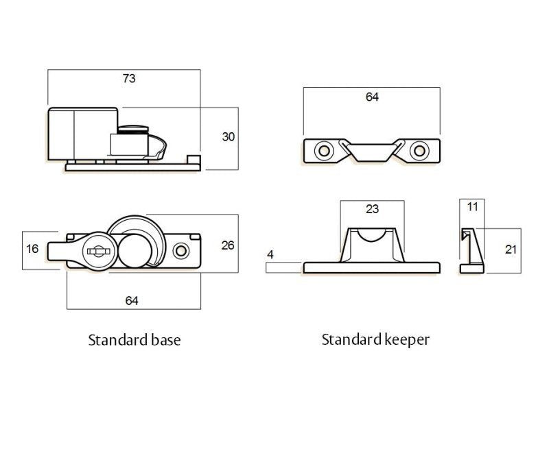 Lockable swivel action double hung window lock. Suitable for double hung windows. Supplied keyed alike.