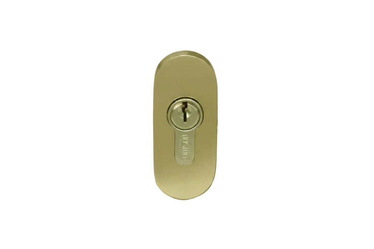 The Austyle Euro Escutcheon Rounded PVD Anti Tarnish Brass 70x30mm is a premium architectural accessory designed to provide a refined and protective finish around euro profile cylinders. Crafted from durable 304 stainless steel with a PVD anti-tarnish brass coating, it offers long-lasting performance with a smooth rounded-edge aesthetic.