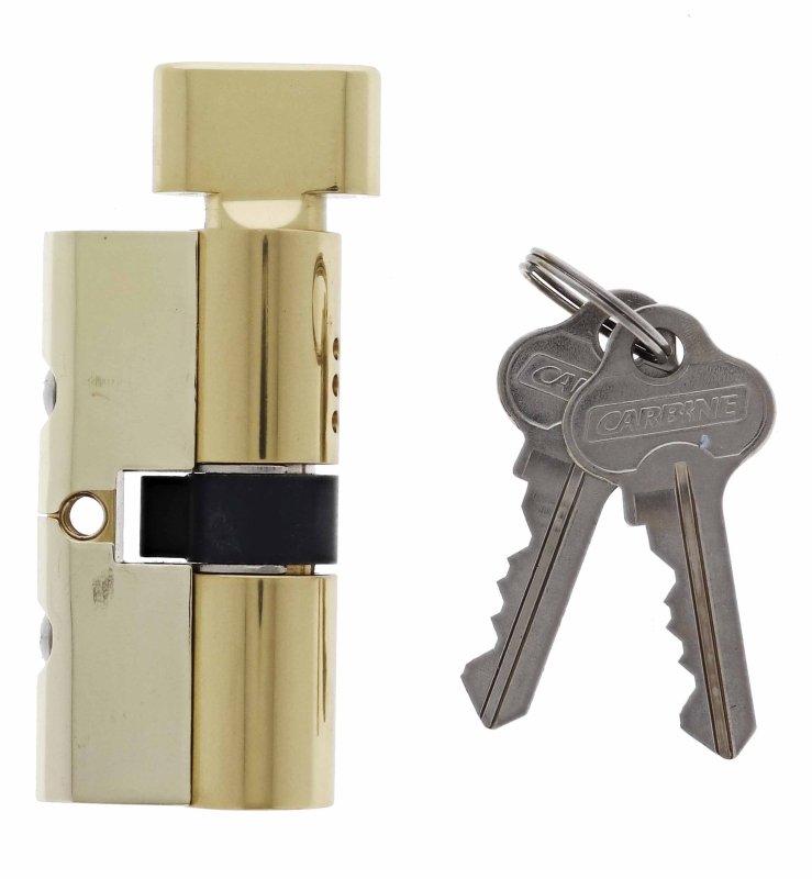 Carbine Euro Cylinder and turn Fixed Cam, 5 pin, C4 Keyed Alike, KA1, Boxed, Polished Brass