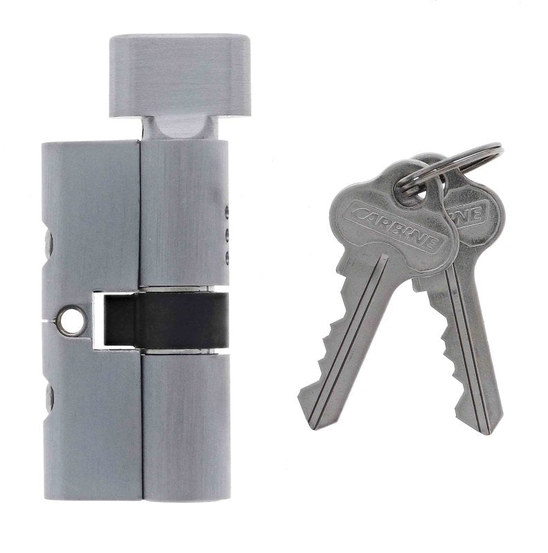 Carbine Euro Cylinder and turn Fixed Cam, 5 pin, C4 Keyed Alike, KA4, Boxed, Satin Chrome