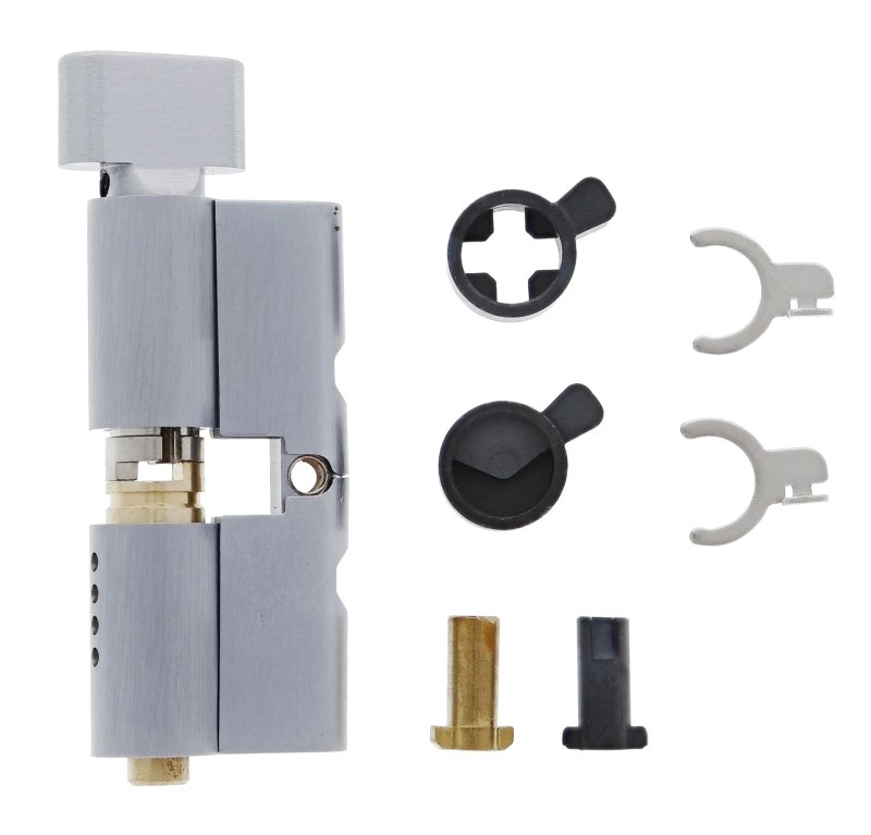 Carbine Euro / Profile Cylinder Housing, Fixed and Lazy Cam 6 pin, Cylinder and turn, Boxed, Satin Chrome