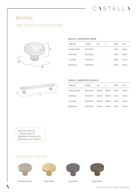Castella Bexhill Hammered Cabinet Pull Handle – Solid Brass