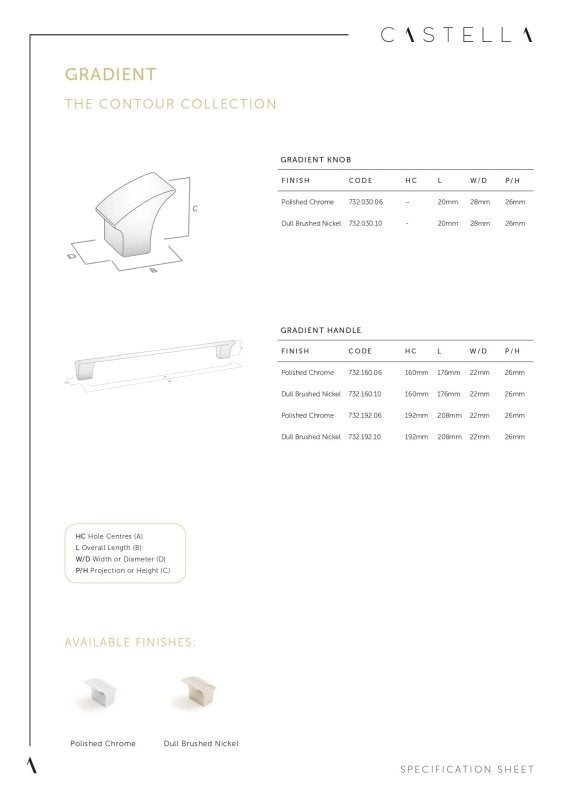Castella Contour Gradient Cabinet Handle – Modern Bar Handle in Chrome & Nickel