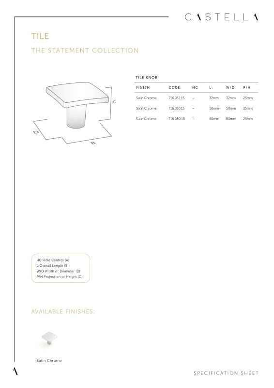 Castella Geometric Tile Kitchen Cabinet Knob – Satin Chrome