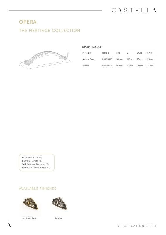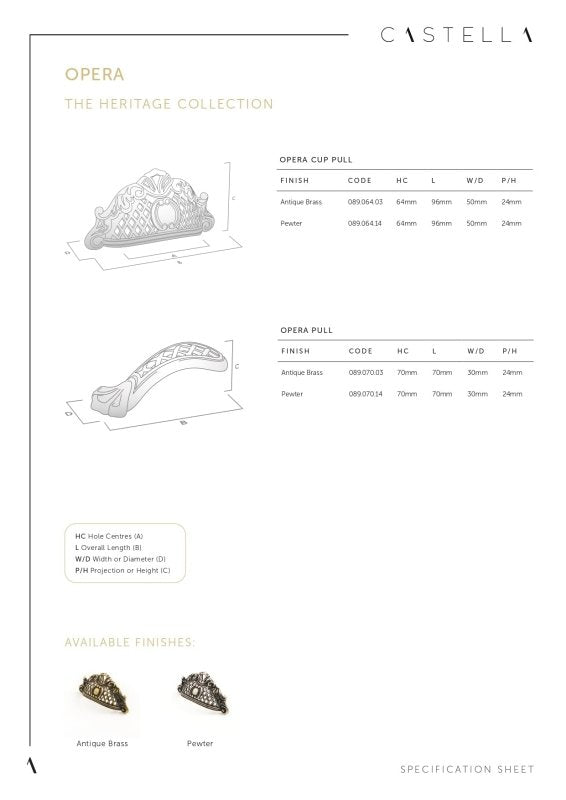 The Castella Heritage Opera Cup Pull showcases timeless elegance with exquisitely crafted detailing, making it the perfect finishing touch for traditional kitchens, cabinets, and drawers. Its refined, Italian-inspired design delivers both functionality and decorative appeal, elevating heritage-style interiors with a touch of luxury.