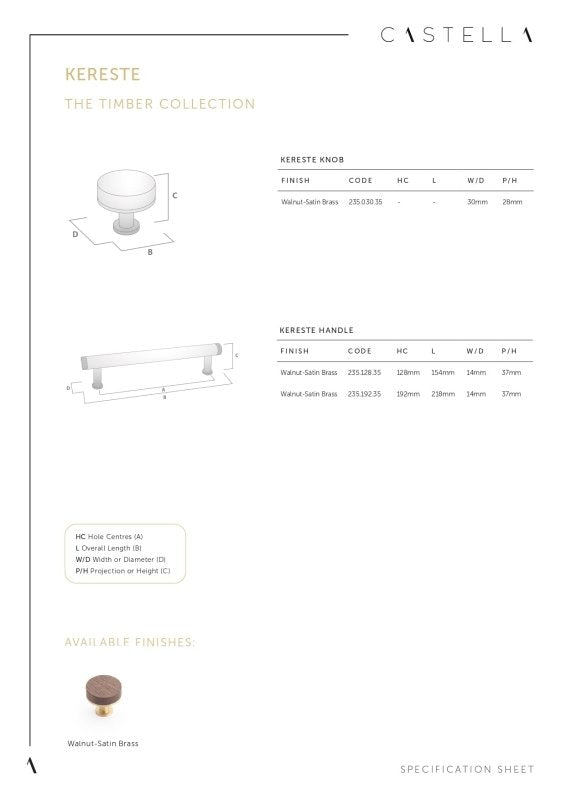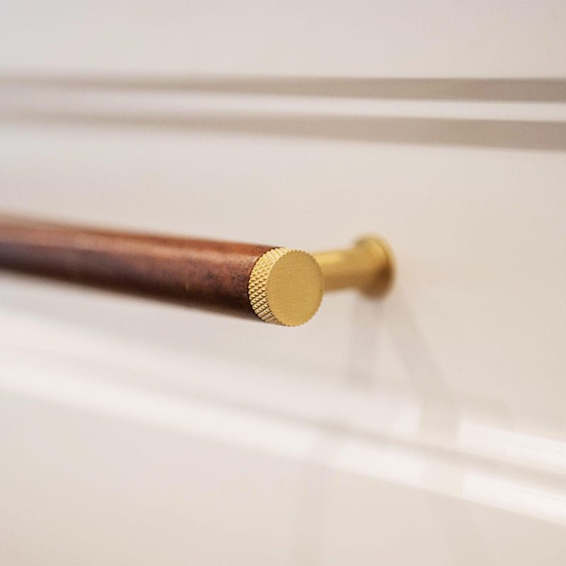 The Castella Kereste Cabinet Knob combines rich walnut with satin brass accents for a luxurious and contemporary look. Designed with knurled brass detailing, it adds both texture and sophistication to cabinetry. Ideal for kitchens, wardrobes, pantries, and other storage furniture.